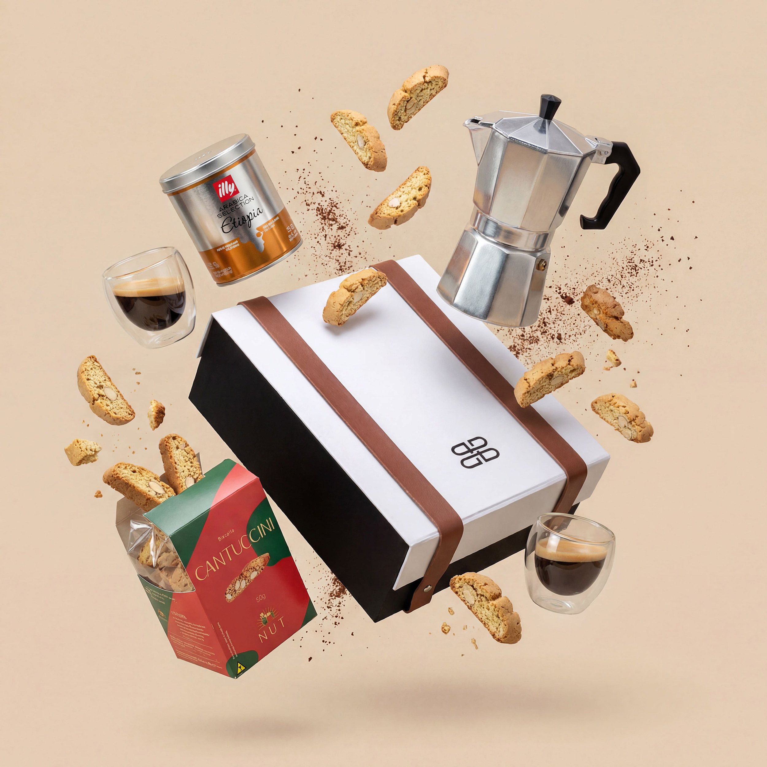 Da intensidade delicada do café etíope Illy ao charme da cafeteira italiana, cada detalhe deste kit foi pensado para criar um momento único: aromas florais, sabores refinados e a harmonização perfeita com os crocantes cantuccini italianos.