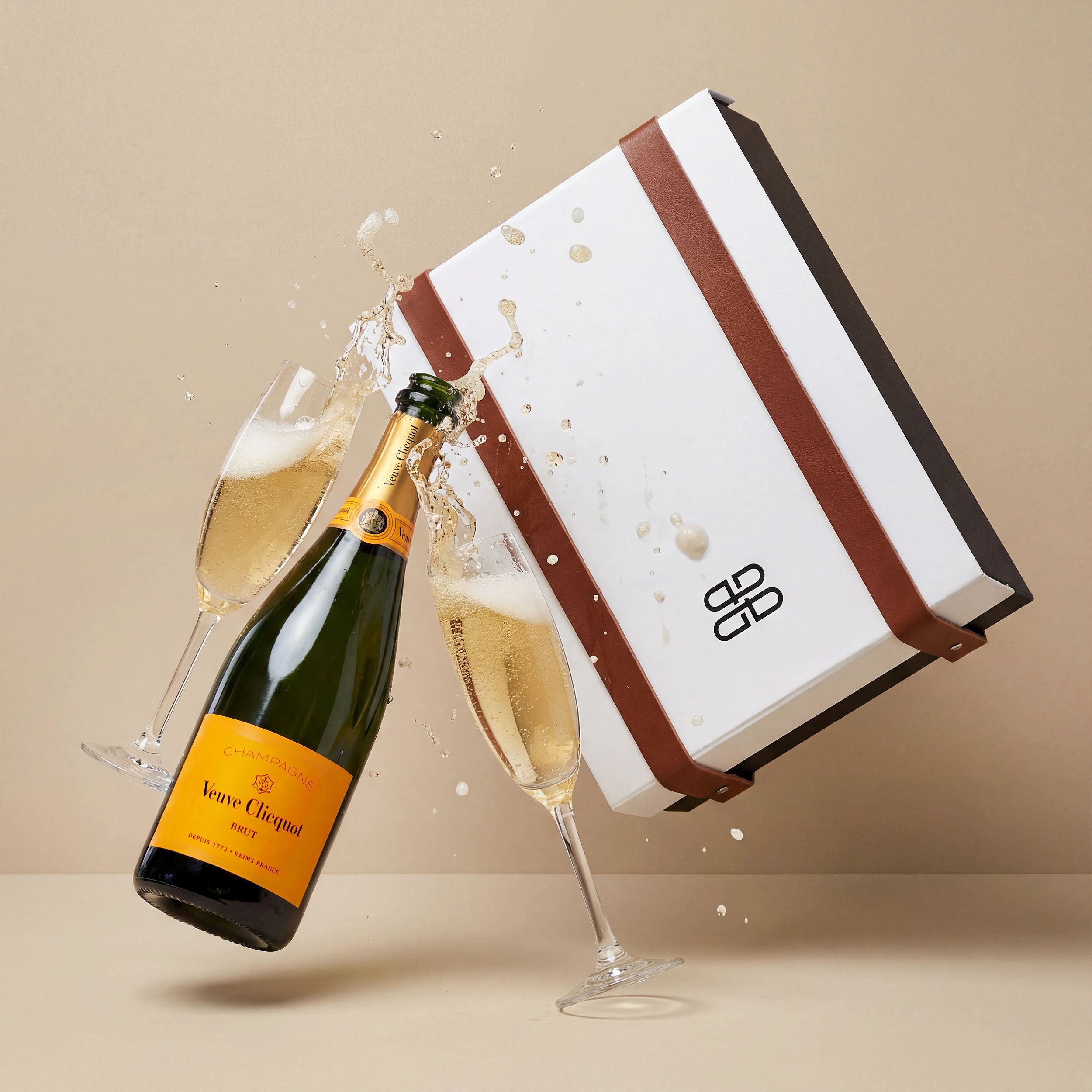 O Kit Veuve Clicquot & Taças de Cristal é o topo da nossa coleção. Foi criado para ocasiões onde apenas o melhor é aceitável.