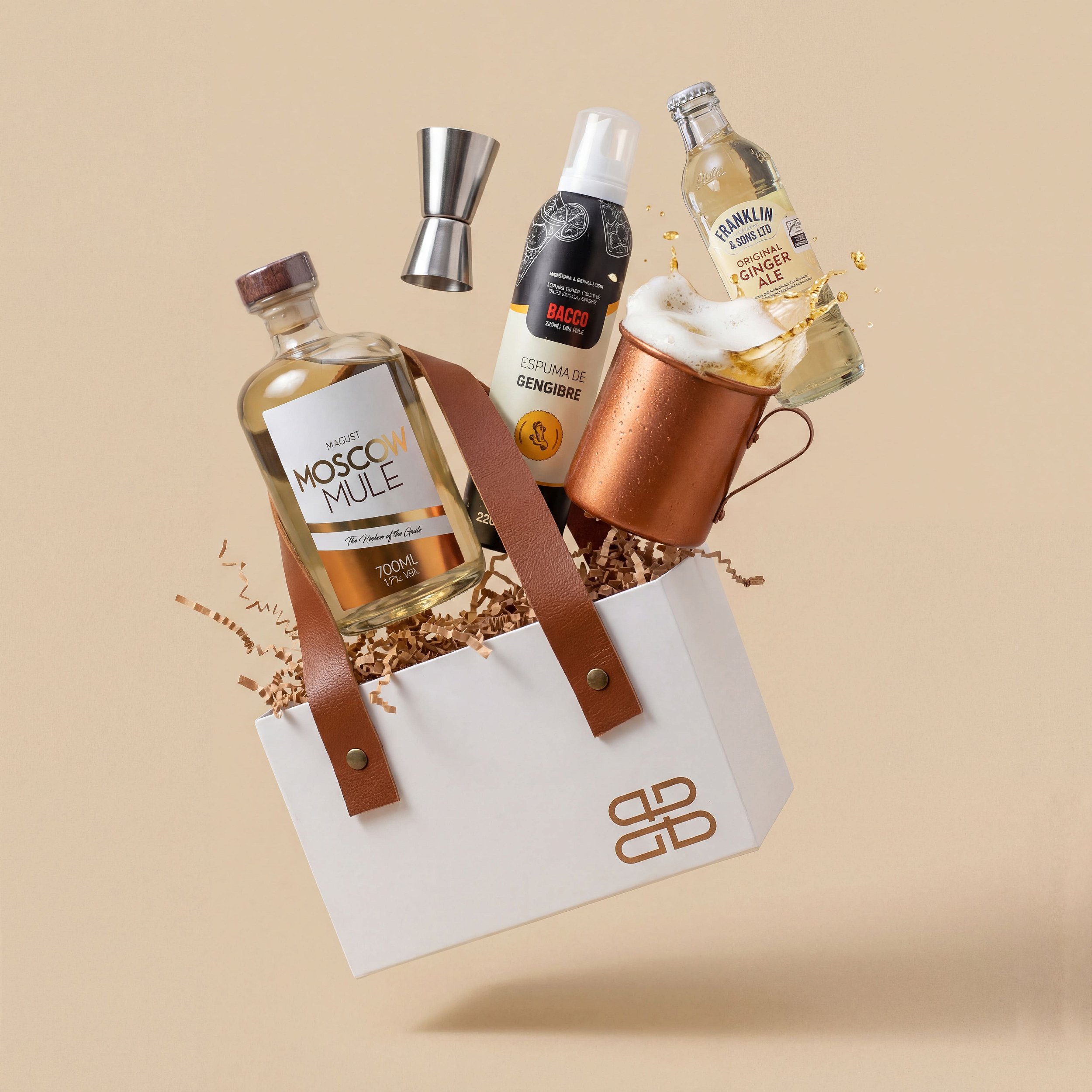 O Kit Moscow Mule Petit entrega todos os elementos da mixologia profissional em uma embalagem charmosa e fácil de transportar.