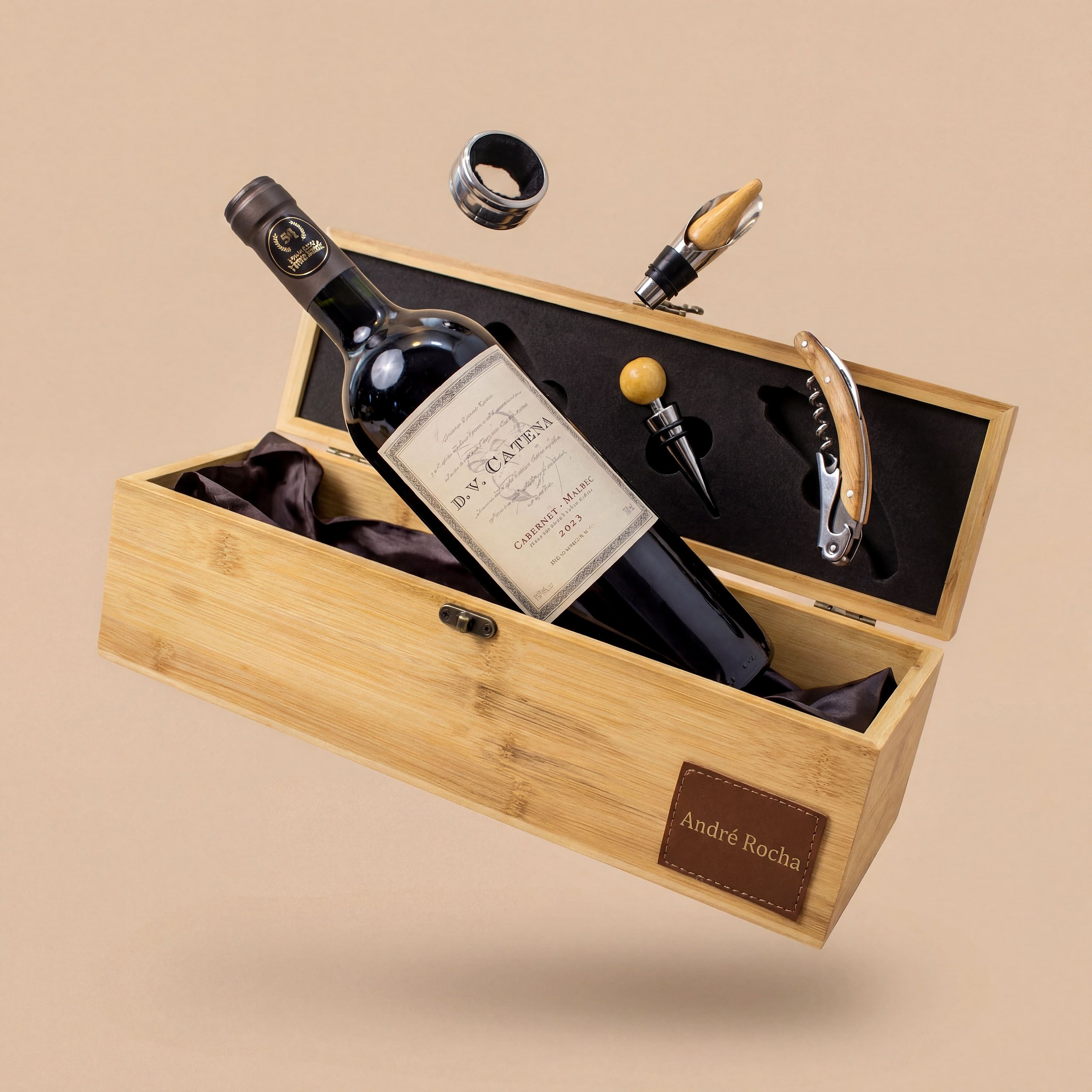 Conjunto para vinho, contendo saca-rolhas com canivete de sommelier, gargantilha, salva-gotas com tampa e rolha, kit indispensável para todos os amantes e apreciadores de vinhos.